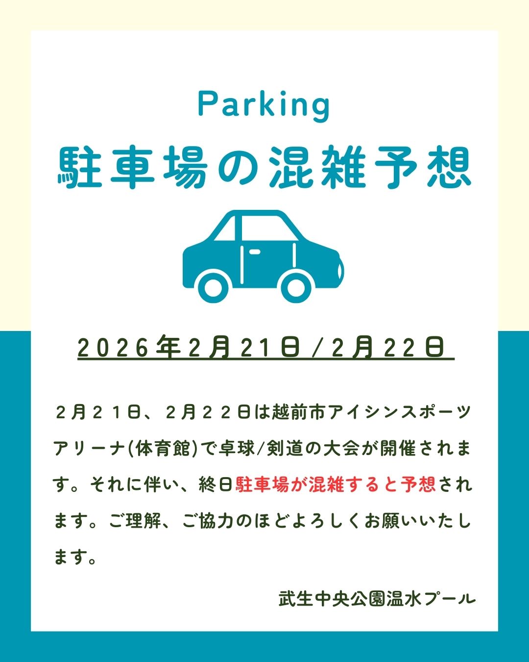 武生中央公園温水プールが2022年3月6日にオープン。