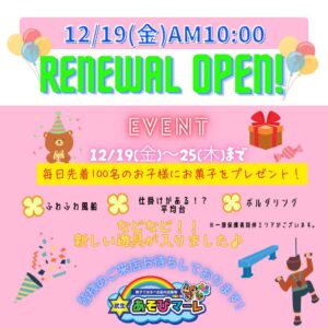 【武生あそびマーレ】12/19(金)リニューアルオープン!